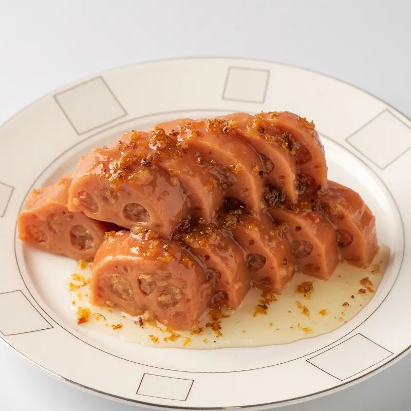 蓋世香糯蓮藕色如瓊脂,紅亮誘人,入口細膩,綿甜之后是脆爽,糯而不黏,清香甜美,回味無窮。